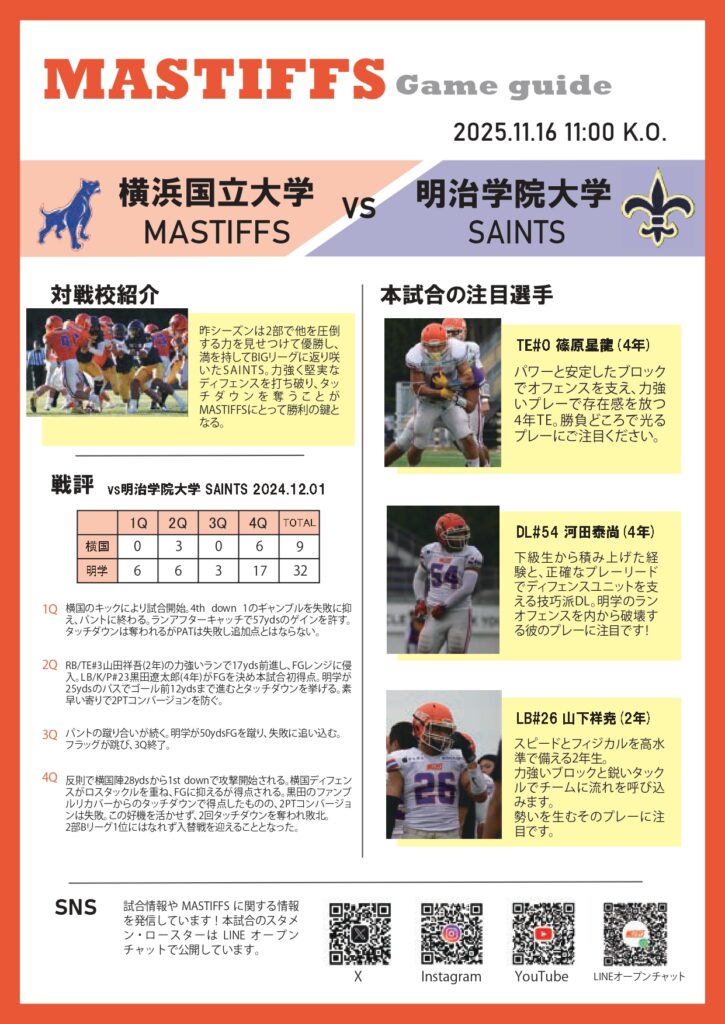 © YNU American Football Team MASTIFFS