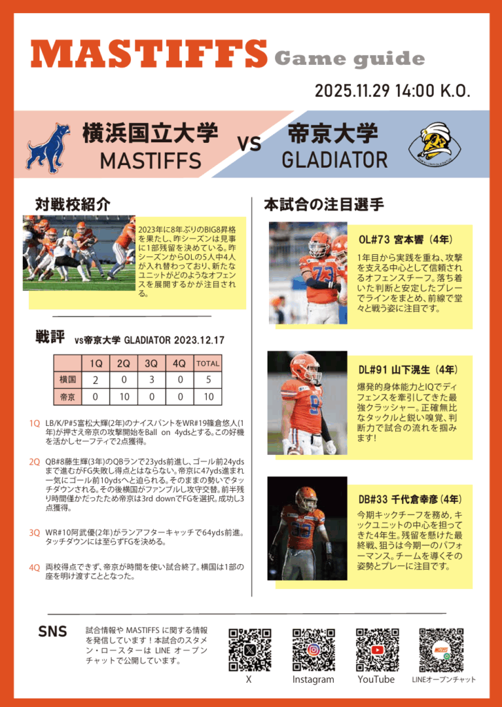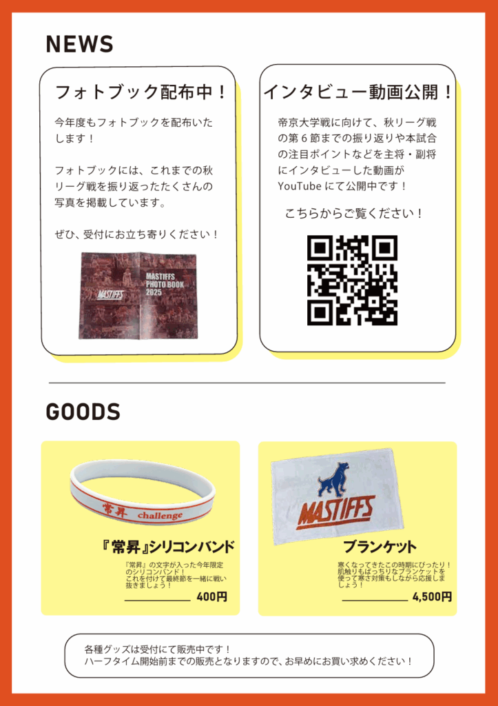 帝京大学戦みどころ 2025 11/28 midokoro NEWS 2025年11月28日 midokoro NEWS よかったらシェアしてね! URLをコピーしました! URLをコピーしました! 【Last Essay’25 #16】TR 大平京夏 【帝京大学戦】試合企画のご案内 関連記事 【合同練習を行いました!】 2025年12月20日 【帝京大学戦】試合企画のご案内 2025年11月28日 【Last Essay’25 #16】TR 大平京夏 2025年11月27日 【Last Essay’25 #17】QB#1 大矢悠人 2025年11月27日 【Last Essay’25 #20】MG 木下歩果 2025年11月27日 【Last Essay’25 #19】OL#60 髙森智己 2025年11月26日 【Last Essay’25 #18】OL#73 宮本響 2025年11月25日 【Last Essay’25 #14】MG 田中乃愛 2025年11月22日