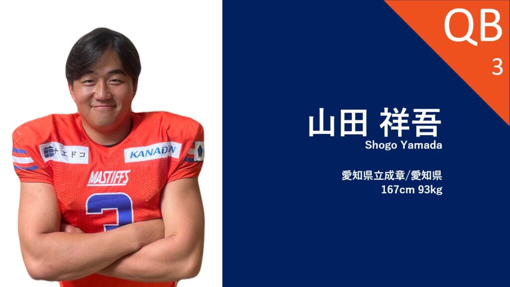 2026年度MASTIFFS主将を務めます、山田祥吾です。